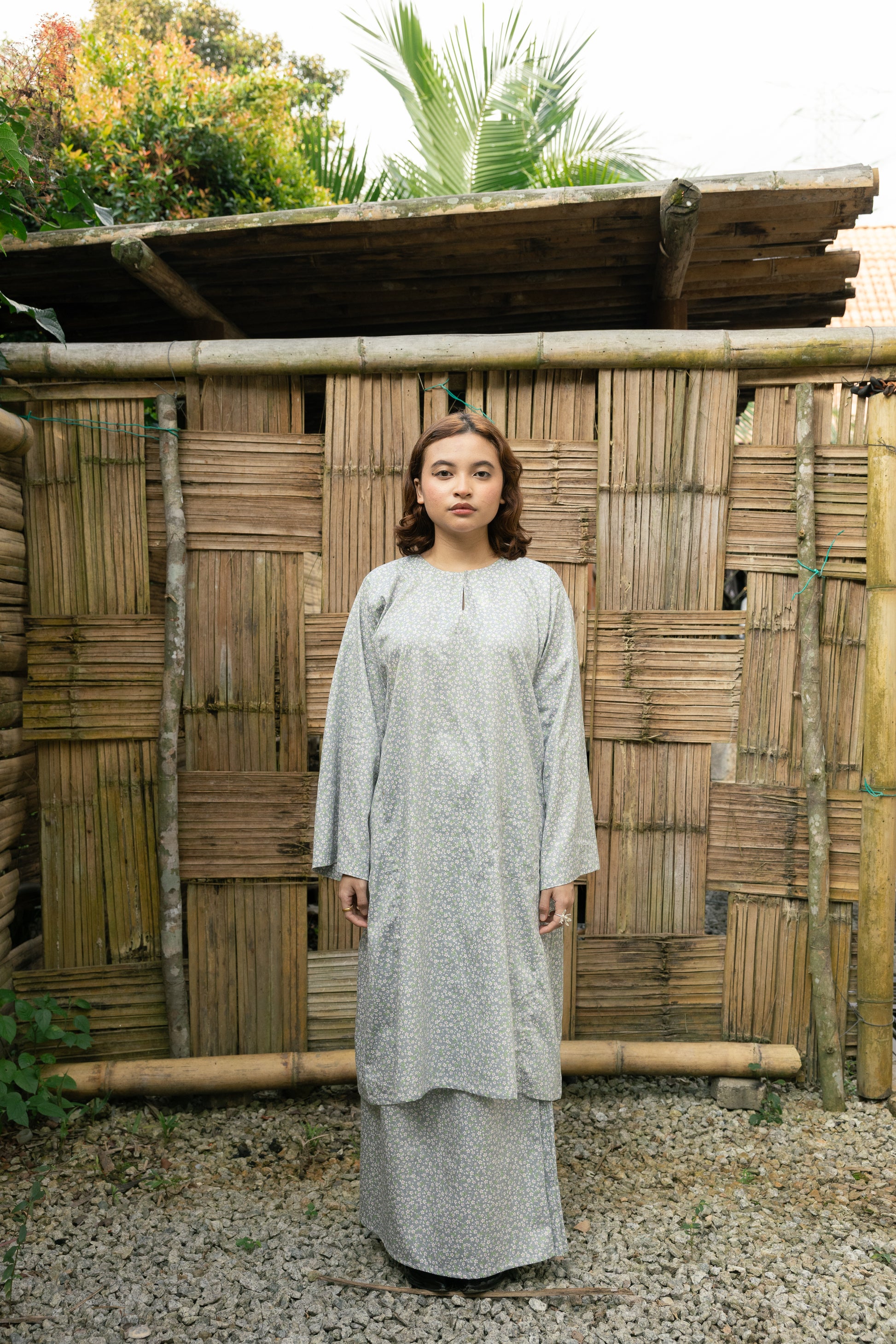 Baju Kurung Floral Perempuan [Kelabu-Hijau]